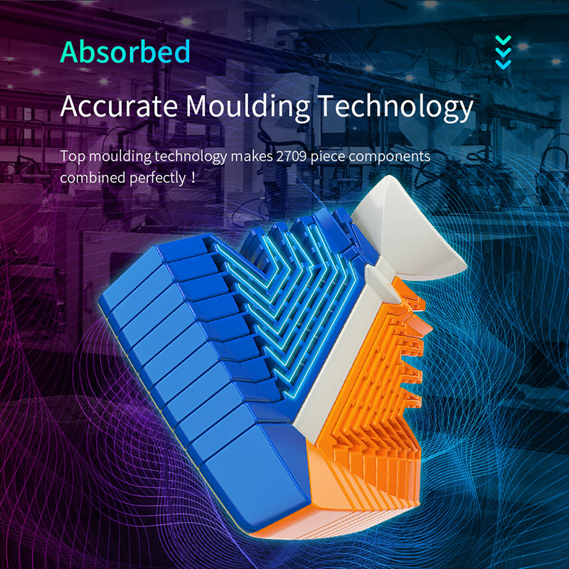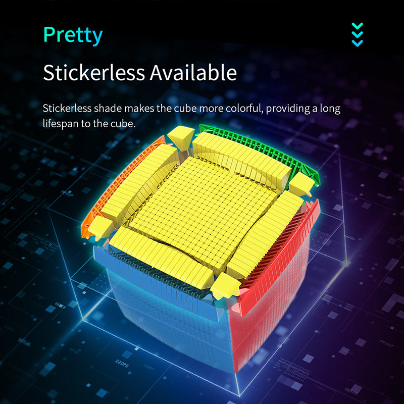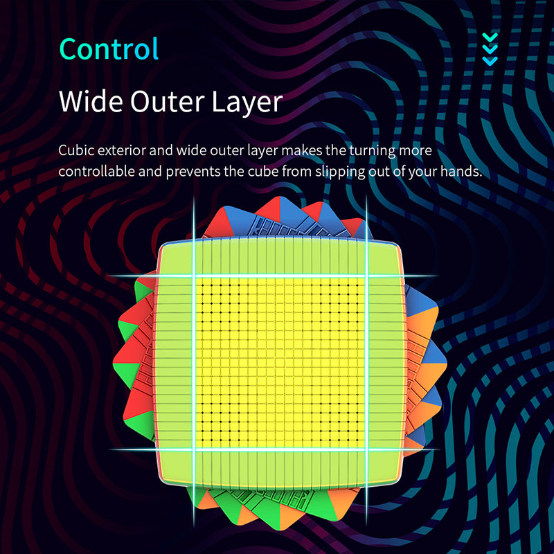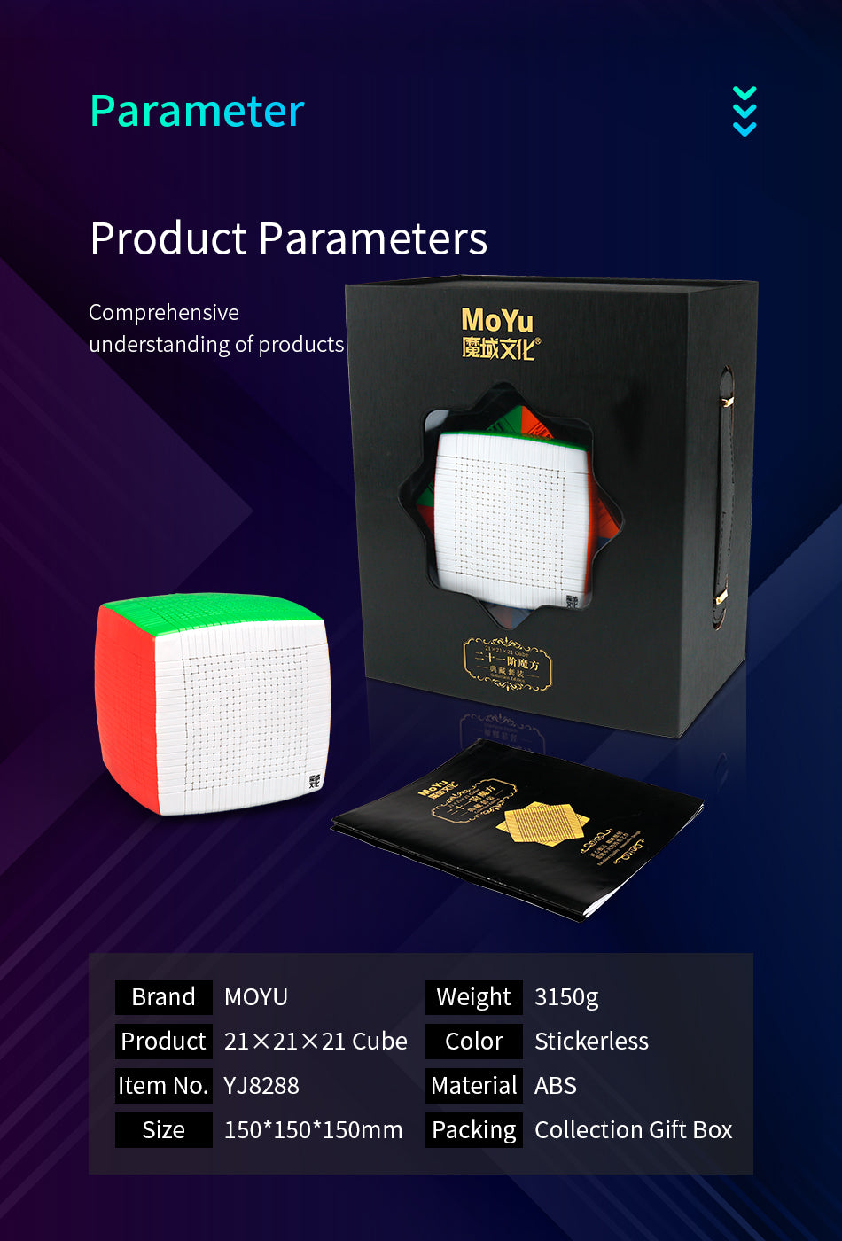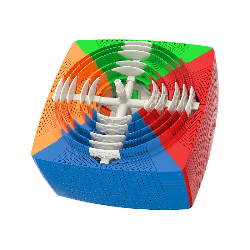 The largest manufactured cube of the "big cube" series, the Moyu 21x21 contains over 2700 pieces. It offers a wide rounded outer surface for smooth turning, with bright stickerless coloured pieces.