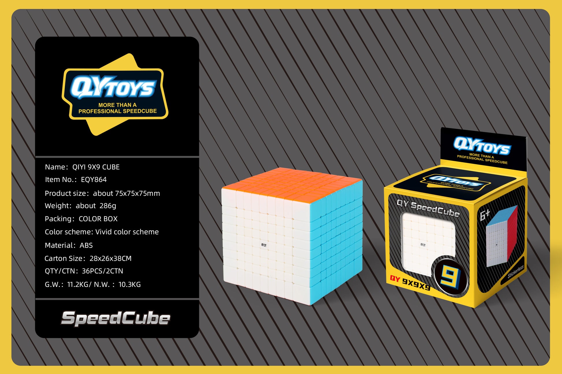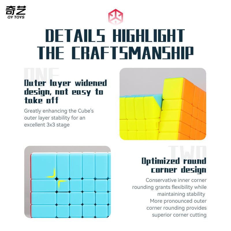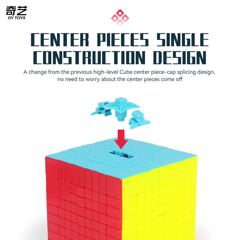 The Qiyi 9x9 is optimised to be pop resistant and to provide better grip and turning control. It features a matte surface design, round corner design for superior corner cutting and bright colour scheme to easily differentiate between colours. Available in stickerless bright.