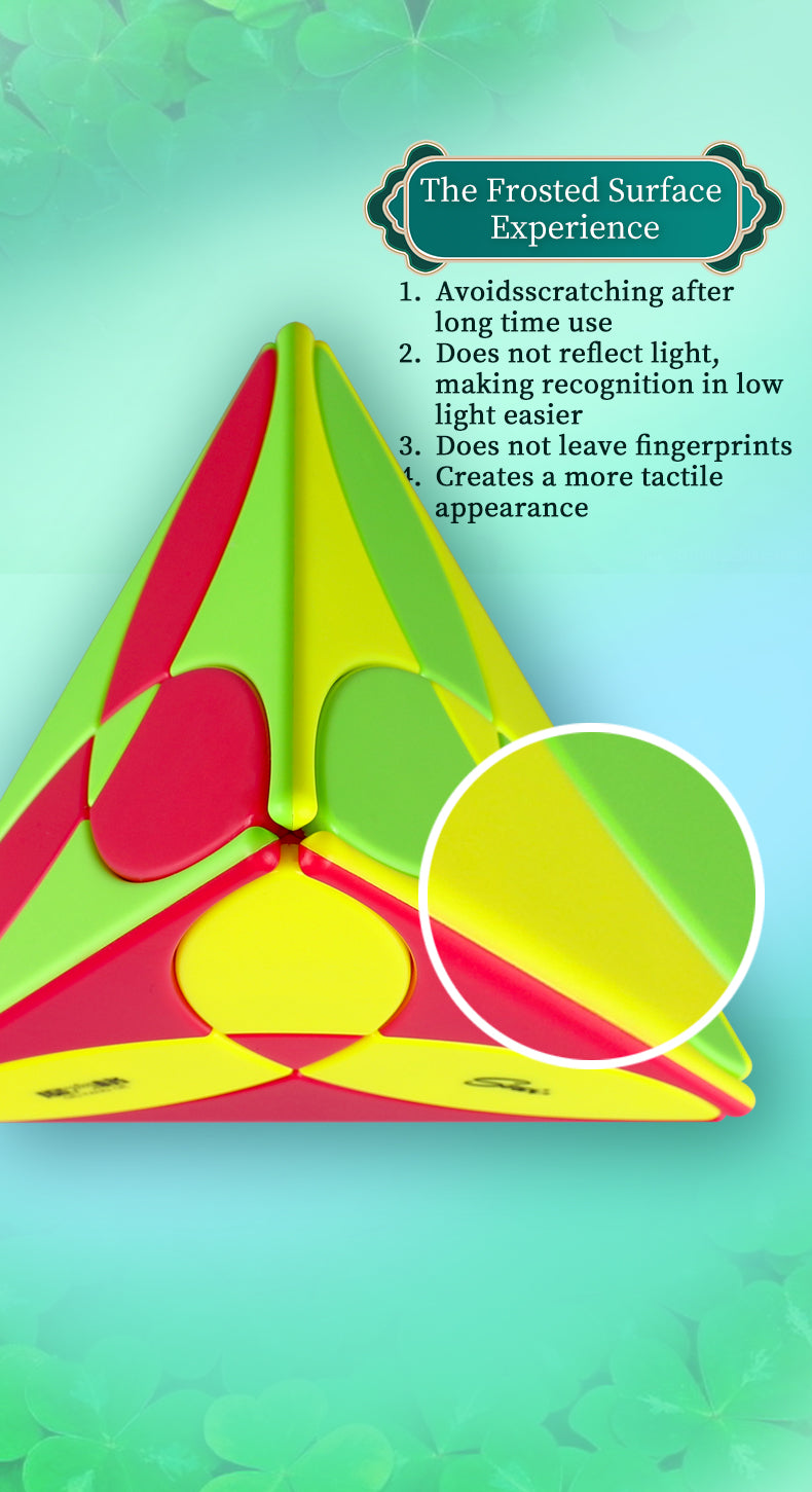 Qiyi Clover Pyraminx is an edge turning Pyraminx and is a shape shifting puzzle like the Qiyi Clover Cube. This is the hardest of the newly released Pyraminx mods by Qiyi. There are hidden inner pieces that interchange with the centers.