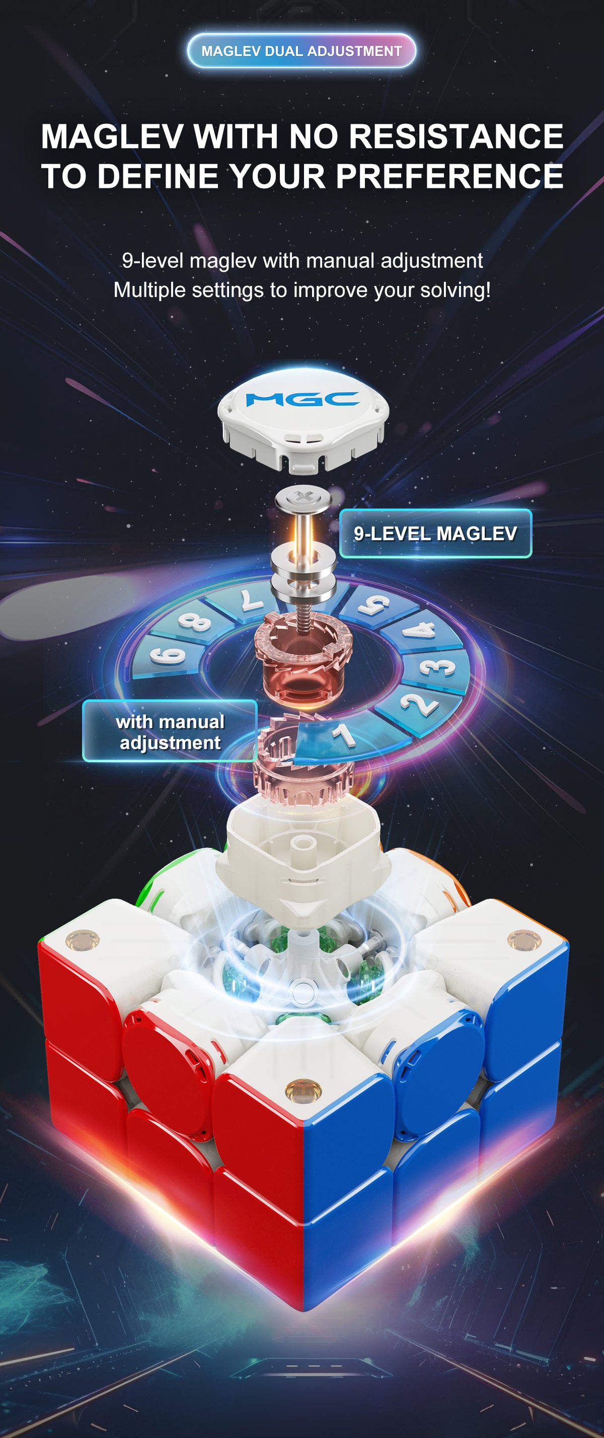 The MGC 3 Beta marks Yongjun's return to a more conventional design in their 3x3s, but nevertheless includes the now-expected and commonplace features like core magnets, core repulsion magnets, and UV coating.